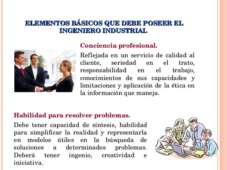 - 16. ELEMENTOS BÁSICOS QUE DEBE POSEER EL INGENIERO INDUSTRIAL