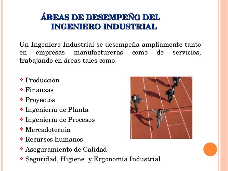 - Un Ingeniero Industrial se desempeña ampliamente tanto en empresas manufactureras como de servicios, trabajando en áreas tales como: