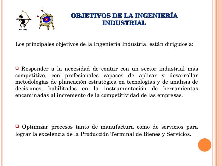 - Los principales objetivos de la Ingeniería Industrial están dirigidos a: